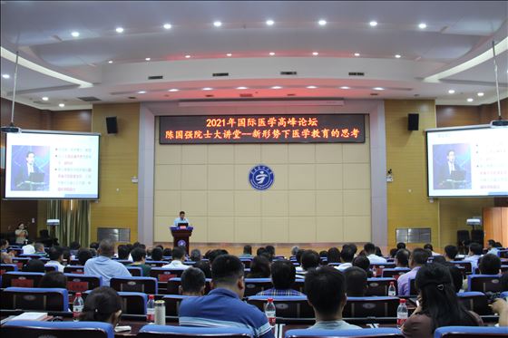 6月28日,学校在雁湖校区尚行会议中心举办2021年国际医学高峰论坛·陈国强院士讲堂,校领导,党政群负责人、科级干部,科研机构、教学(教辅)单位党政负责人,教师、研究生、本科生代表300余人参加报告会。报告会...