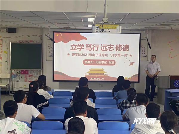 9月29日下午,学校纪委书记谢波以“立学 笃行 远志 修德——做新时代的大学生”为题,在雁湖校区厚生楼为理学院2021级电子信息班全体同学讲授了一堂生动的开学第一课。谢波分别从“立学求真、夯基垒石”“笃行致...