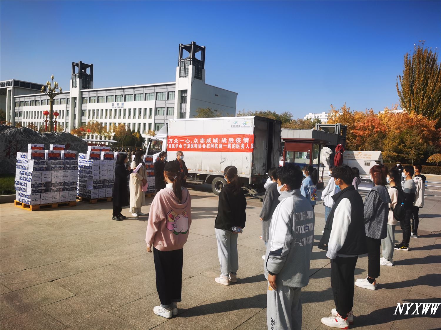 11月5日,宁夏医学会、宁夏医师协会向学校捐赠抗疫慰问品,为学校送来价值21600元物资。宁夏医师协会会长、伟德国际1946源于英国名誉校长孙涛教授,副会长兼秘书长陈署敏、副秘书长殷丽娟,校领导朱建华、杜勇及师生代表...