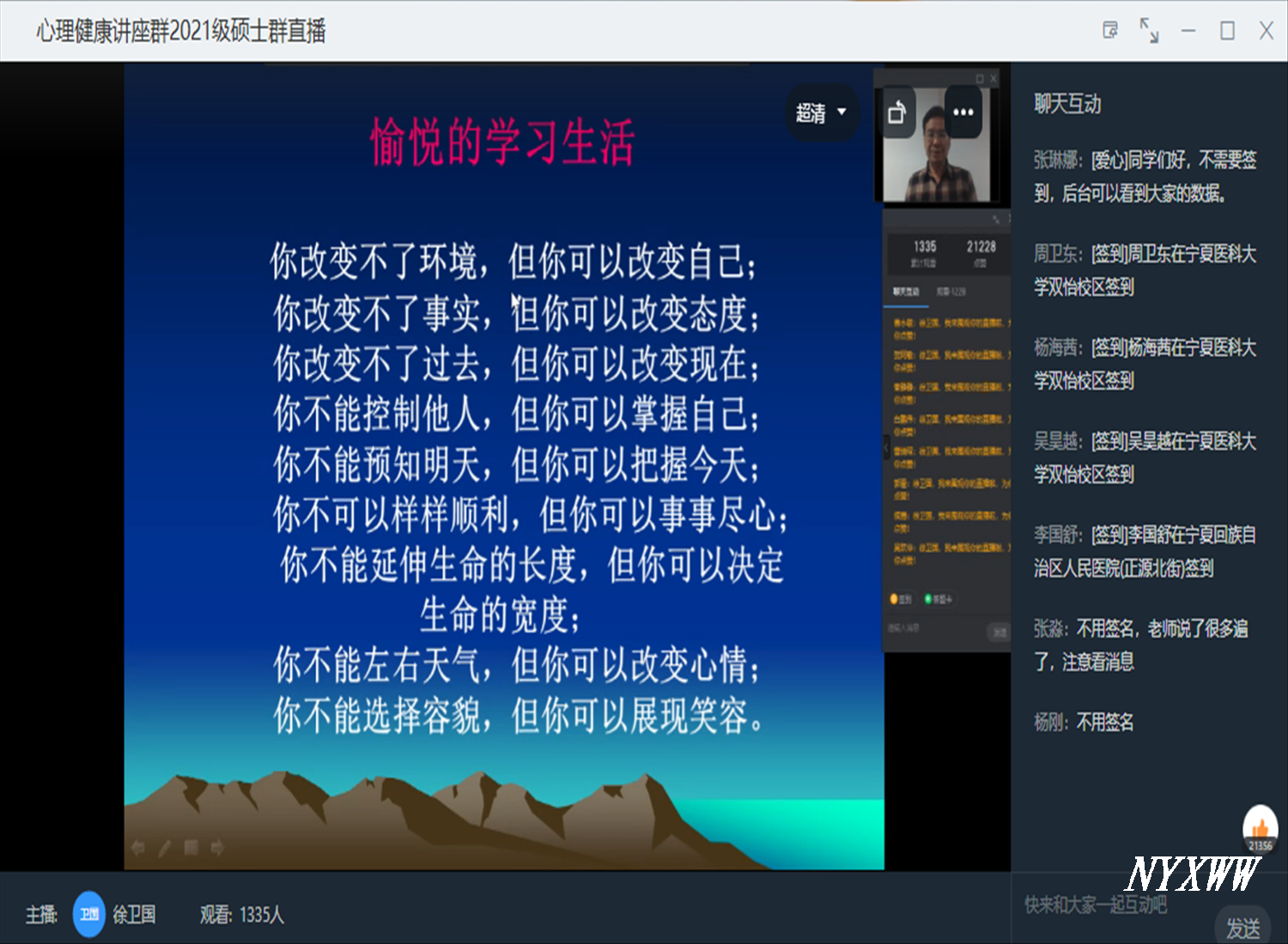 11月12日至13日,为全面提升伟德研究生心理调适能力,营造轻松愉快的学习、生活环境,学校举办“关注心理健康学会有效沟通”研究生心理健康线上系列讲座,全校博硕士研究生2500余人次在线聆听了讲座。12日,宁夏...