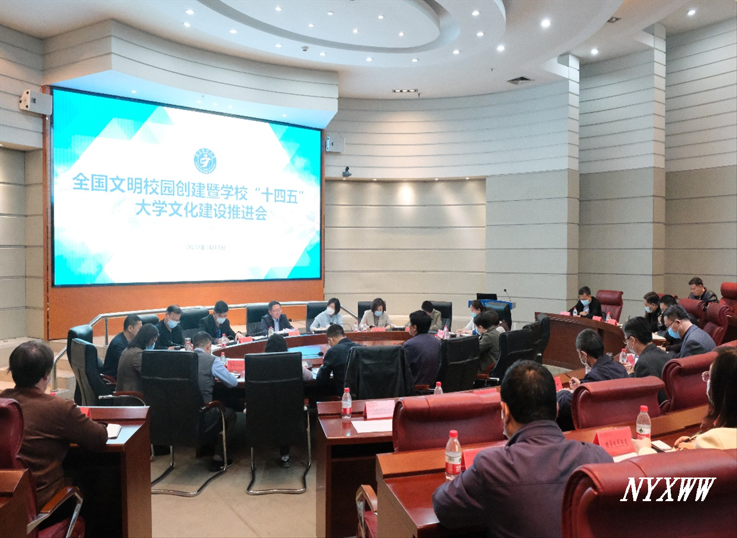 3月11日,学校在雁湖校区国际会议厅召开创建国家级文明校园暨“十四五”大学文化建设推进会。学校党委副书记牛阳,党政群部门负责人和基层党组织书记共40余人参加了会议。会议由牛阳主持。会上,宣传部副部长李谦...