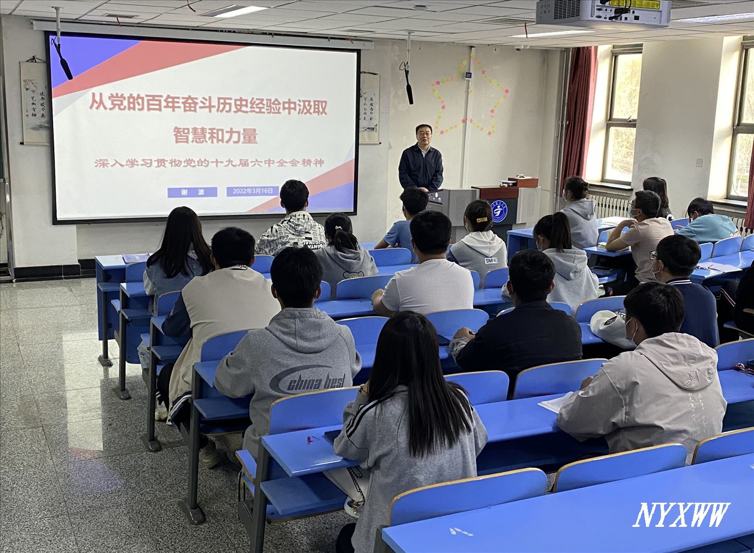 3月16日下午,学校纪委书记谢波在雁湖校区厚生楼为理学院2021级电子信息班全体学生讲授 “开学第一课”。谢波以《从党的百年奋斗历史经验中汲取智慧和力量》为题,对党的十九届六中全会精神作了全面阐释和深入解...