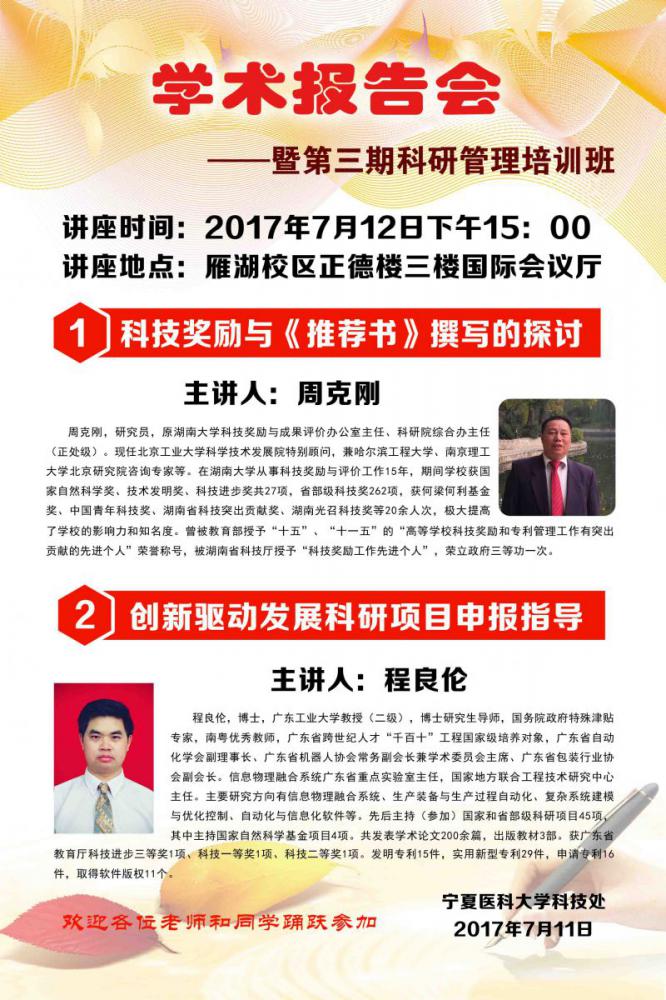 学术报告:2018年NSFC项目申报动员会暨第四期科研管理培训班