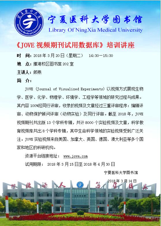 雁湖论坛:《JOVE视频期刊试用数据库》培训讲座——郎燕