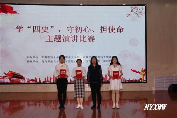 比赛正式开始前,马克思主义学院精心编排了《青春中国》诗朗诵环节,为比赛做了“预热”。整个演讲比赛,突出“四史”主题,初赛中脱颖而出的13名宁医学子各展风采。大家或结合亲身经历,或聚焦理论学习,或着眼社会现状,以“在祖国心中长大”、“传承红色基因,共创华夏荣光”等为题,讲述了自己对“中国共产党为什么能”“马克思主义为什么行”“中国特色社会主义为什么好”的理解,表达了传承红色基因的决心。学校宣传部常务副部长马晓东进行了点评。