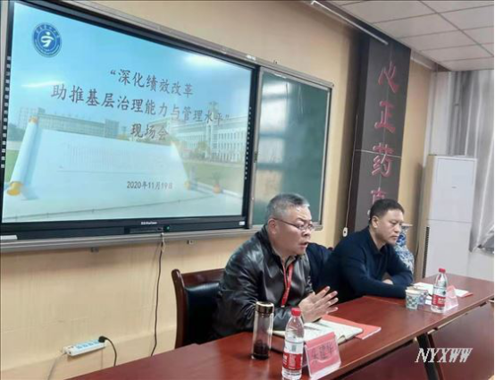 现场会上,药学院院长余建强、基础医学院院长刘娟分别就本单位推进绩效考核工作中的具体做法、取得的效果以及当前存在的问题与不足做交流发言。