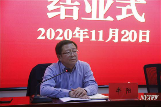 结业仪式上,牛阳以“习近平总书记关于领导干部的‘七种能力’建设重要论述解读”为题,结合贯彻落实党的十九届五中全会精神,以习近平总书记在中央党校中青年干部培训班开班式上的重要讲话精神为重点,勉励新任干部坚定理想信念、加强政治历练、增强为民情怀,在推进学校高质量发展中锤炼“七种能力”。