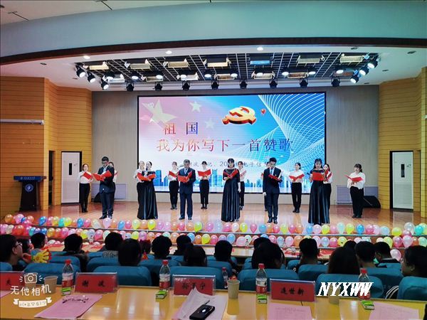 此次主题党日活动由2018级电子信息班合唱《没有共产党就没有新中国》拉开序幕, 谢波与2017级电子信息班学生合诵《祖国我为你写下一首赞歌》,学院班子、行政、教工党支部、各教研室和各年级学生先后朗诵了《歌颂伟大的党》《红船,从南湖启航》《可爱的中国》《改革开放新时代》等配乐朗诵节目。节目围绕着奋斗历程、歌颂伟大祖国、憧憬美好未来等方面,老师和学生们饱含着深情,在悠扬的音乐声中,或婉约抒情、或慷慨激昂,唱响了一曲曲动人的赞歌。
