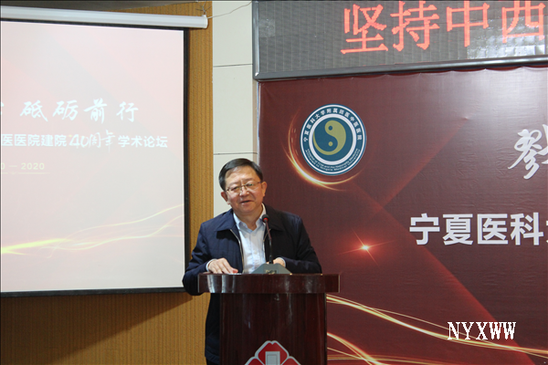 论坛在医院专题片《大医精诚 不忘初心》开启,常务副院长张晓东代表医院致辞,他总结了医院四十年取得的成绩,对各级党委政府和社会各界及广大职工的努力表示感谢。牛阳代表历届领导班子成员发表感言,他谈到,医院成为宁夏区域中医(针灸)专科联盟核心成员单位、宁夏呼吸专科联盟、妇科联盟、门静脉高压联盟成员单位,建立了北京中医药“薪火传承3+3工程”杨甲三名家研究室分站,取得了医院改革发展的阶段性成果。希望医院全体干部职工要全面落实新发展理念,用好现有医疗资源,在提升技术上下功夫,在打造品牌上出实招,深化改革,开拓创新,进一步推进医疗、科研与教学协同发展。