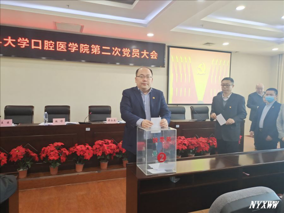 1月9日上午,口腔医学院在口腔医院第二会议室召开第二次党员大会。校党委常委、总医院院长金群华,组织部常务副部长张云飞出席会议,口腔医学院全体师生党员参加会议,学院民主党派代表和教师代表列席会议。会议由学院院长、党委副书记黄永清主持。
