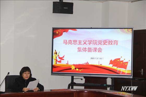 3月以来,马克思主义学院召开党史学习教育动员大会、集体备课会、专题辅导讲座,就如何推动党史教育融入思政课教学,如何开展不同层面、不同行业党史教育宣讲作了深入地研讨交流,学院院长窦红莉围绕“如何强化党史学习教育的实效性”给宣讲团成员和全体教师提出了工作思路和明确要求。学院注重根据不同课程特点有机融入党史教育,将组织开展大学生历史剧展演、历史故事演讲、红歌演唱等系列活动。根据自治区教育工委的统一安排,经过前期创作策划和文字稿的撰写,学院目前正在录制视频《中国共产党历史》(上、中、下),拟推送学习强国。派选马红艳老师、张宏老师参加自治区党史教育宣讲团,分别赴宁夏交通投资集团公司、宁夏农投集团公司等多地开展主题宣讲,引起热烈反响。此外,学院编印《学习“四史”,鉴往知来—庆祝中国共产党成立100周年》读本供学校干部和师生参阅,为全体教师及时配发《论中国共产党历史》等必读书目。通过一系列形式多样的学习教育活动,初步形成了全院上下自觉学习宣传党史的良好局面。