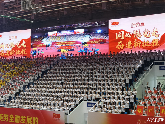 6月18日,为隆重庆祝中国共产党成立100周年,歌颂建党百年光辉成就,向建党100周年献礼,全区教育系统庆祝建党100周年“永远跟党走”千校万人红歌汇在银川市体育馆隆重举行。学校团委联合临床医学院和护理(高职)学院组织388学生参加了汇演。