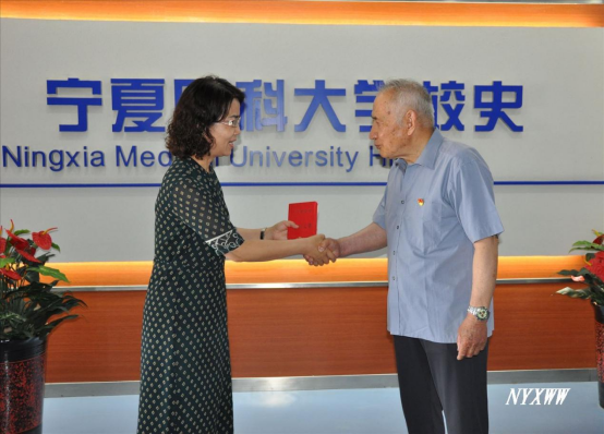 6月18日上午,学校首届校友82岁高龄的原宁夏医学院副院长速家震教授回到母校,在学校副校长刘志宏的陪同下参观了校史馆,捐赠了宁医首届毕业证,并为大家讲述学校解剖教研室的发展史。