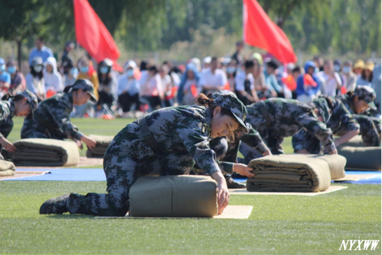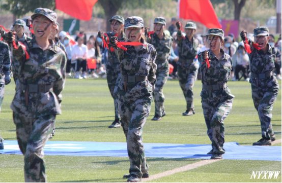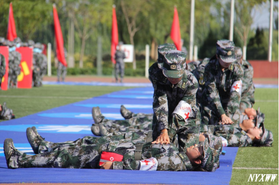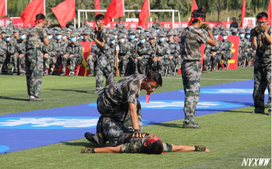 昂首阔步凌云志,英姿勃发赞青春。军训成果汇演中,女子匕首操、男子格斗术、内务整理、战场紧急救护、“青春心向党”拉歌等精彩表演点燃了全场宁医人的热情,充分展现了宁医人始终以军人的标准要求自己,以吃苦耐劳、不畏困难、团结友爱的精神,完成了各项军事训练。马林代表学校向中国人民解放军赠送锦旗。