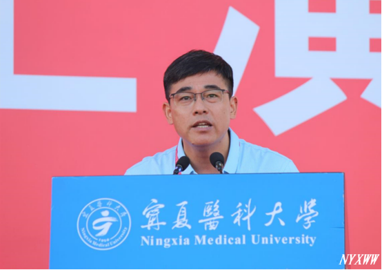 姜怡邓代表学校全体师生,向新同学表示欢迎和祝贺,向学生家长、指导老师及军训教官致以诚挚的感谢。他希望同学们能“胸怀家国,精医济世”。要成为一名合格的医学人才,最重要的一点就是要心怀“国之大者”,将家国情怀融入精医仁心,彰显在民众危难之时。在未来的人生选择上,能把个人志向、发展追求融入国家需要的星辰大海,始终与国家前途、民族命运同向同行,去谱写宁医精神的崭新篇章。他希望同学们能“追求卓越、矢志创新”。要由局部趋于整体、由传统趋于创新、由独立趋向融合,在不同的学习阶段,都要不断锤炼创新能力,敢于突破体系,打破常规,勇于创新,在新技术变革大潮中划出属于自己的事业之桨。他希望同学们能“修身立德,执着坚守”。 要以榜样的力量鞭策自己,刻苦学习医学知识,深刻领会健康理念,时刻践行医学人文,提升从医温度。以根植内心的善良丈量医者仁心,以精湛医术践行医学生誓言,除人类之病痛,助健康之完美。他勉励新同学们不负韶华,不负时代,不负党和人民的殷切期待,以实现中华民族伟大复兴为己任,做胸有家国、追求卓越、矢志创新的宁医人。