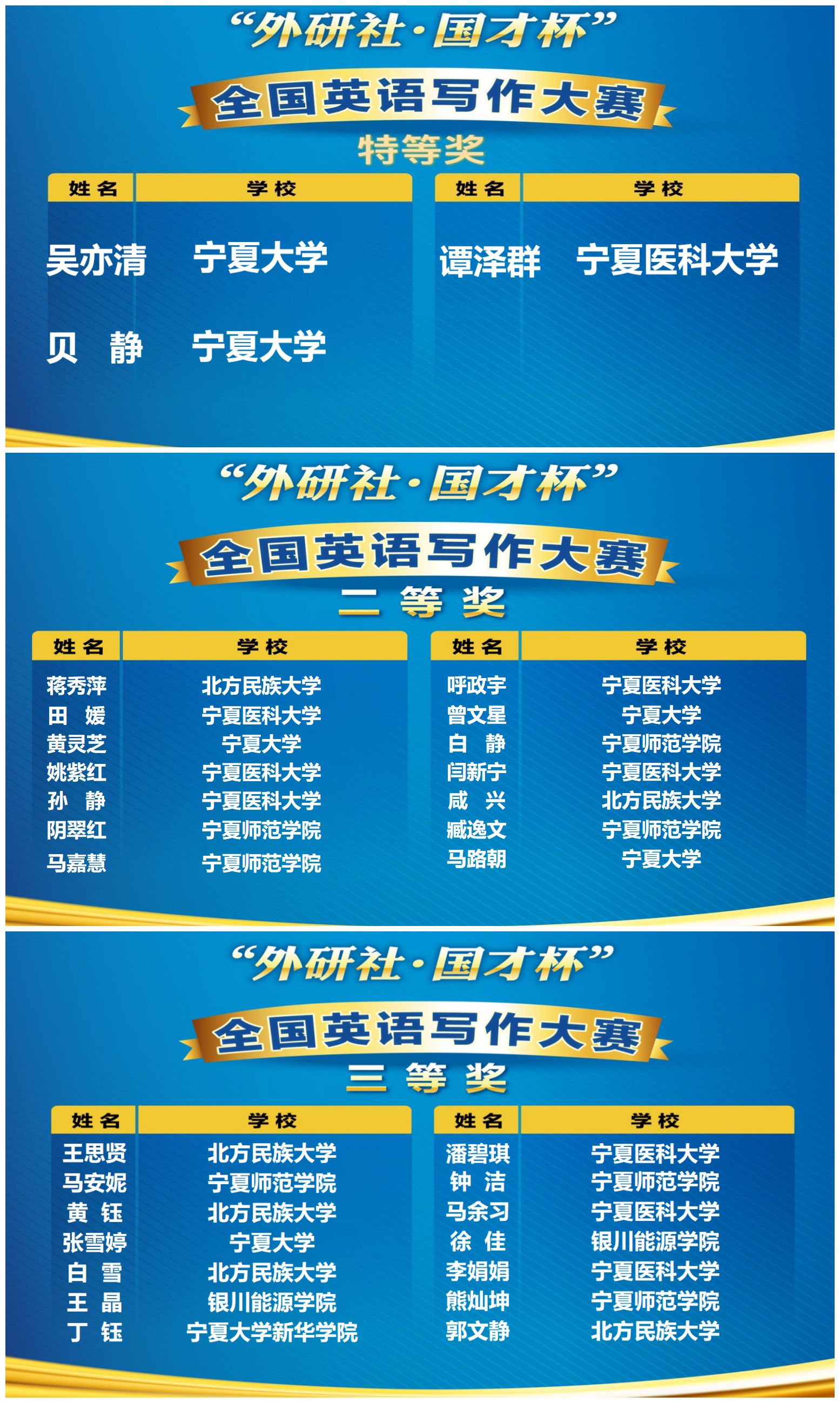此次大赛中,宁医学子思维缜密、逻辑强大、妙语连珠,以优异的表现取得了25项自治区级三等奖以上的辉煌成绩,其中特等奖1项、一等3项、二等11项和三等10项。2019级临床4班的谭泽群同学获得了写作大赛特等奖,将代表宁夏参加全国总决赛。