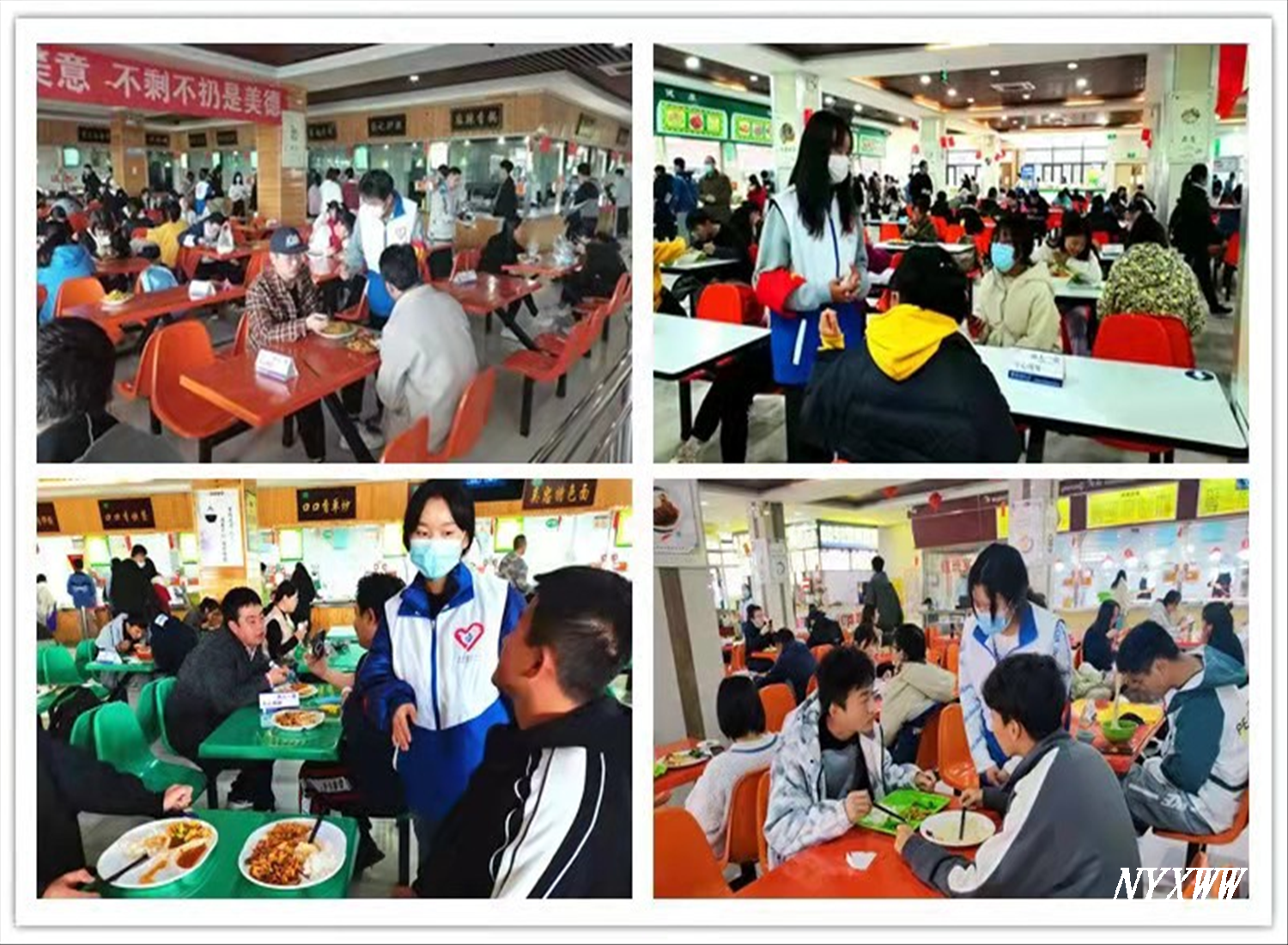 正值疫情防控紧要关头,即使天气凛冽,志愿者们也没有丝毫退缩和松懈,按时到岗进行食堂志愿。每天午餐和晚餐前,我们总能看到志愿者忙碌的身影,他们组织就餐师生自觉佩戴口罩,遵守就餐秩序,有序就餐。提醒广大同学保持一米间距排队购餐,尽量每桌两人交叉就坐,就餐时不交谈,努力降低交叉感染风险。