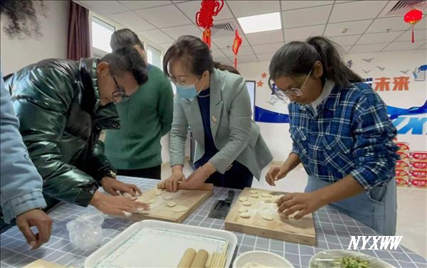 杜勇代表学校向全体留学生致以诚挚的节日问候和新春祝福,希望同学们在新的一年刻苦学习,不断加强对中国文化的了解,作促进各国人民民心相通的友好使者。她还关切的询问留学生学习和生活上存在的困难,提醒大家假期注意安全,过一个平安祥和的中国年。活动中,主持人向留学生介绍了春节知识,让留学生深刻了解了春节的习俗和特色。海外留学生代表为大家送来了新年祝福,并期盼早日返校学习。参加活动的领导为所有在校留学生送上了新年慰问品并和留学生共同包饺子感受春节的气氛。