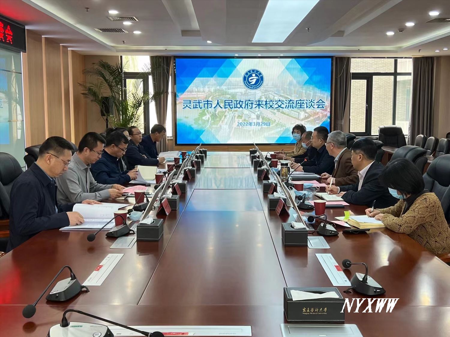 3月29日上午,灵武市委副书记、政法委书记王喆,灵武市委组织部、卫生健康局、人民医院、中医医院相关负责人来校交流座谈。学校党委副书记朱建华,组织部、招生就业处、对外合作交流处、研究生院、临床实践教学中心负责人在正德楼201会议室参加座谈。