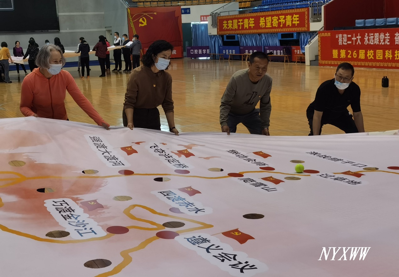 4月25日下午,体育部党总支、图书馆党总支、档案馆/学报编辑部直属党支部联合开展“喜迎二十大 永远跟党走 奋进新征程”素质拓展主题党日活动。副校长刘志宏应邀参加。
