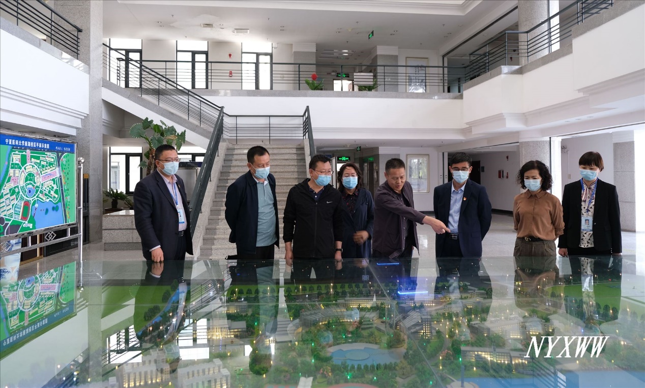 4月25日下午,自治区发改委党组成员副主任杨瑞军和社会处处长姚永昌一行到学校调研已建和在建工程项目,学校校长姜怡邓、副校长刘志宏、郝银菊等陪同调研。