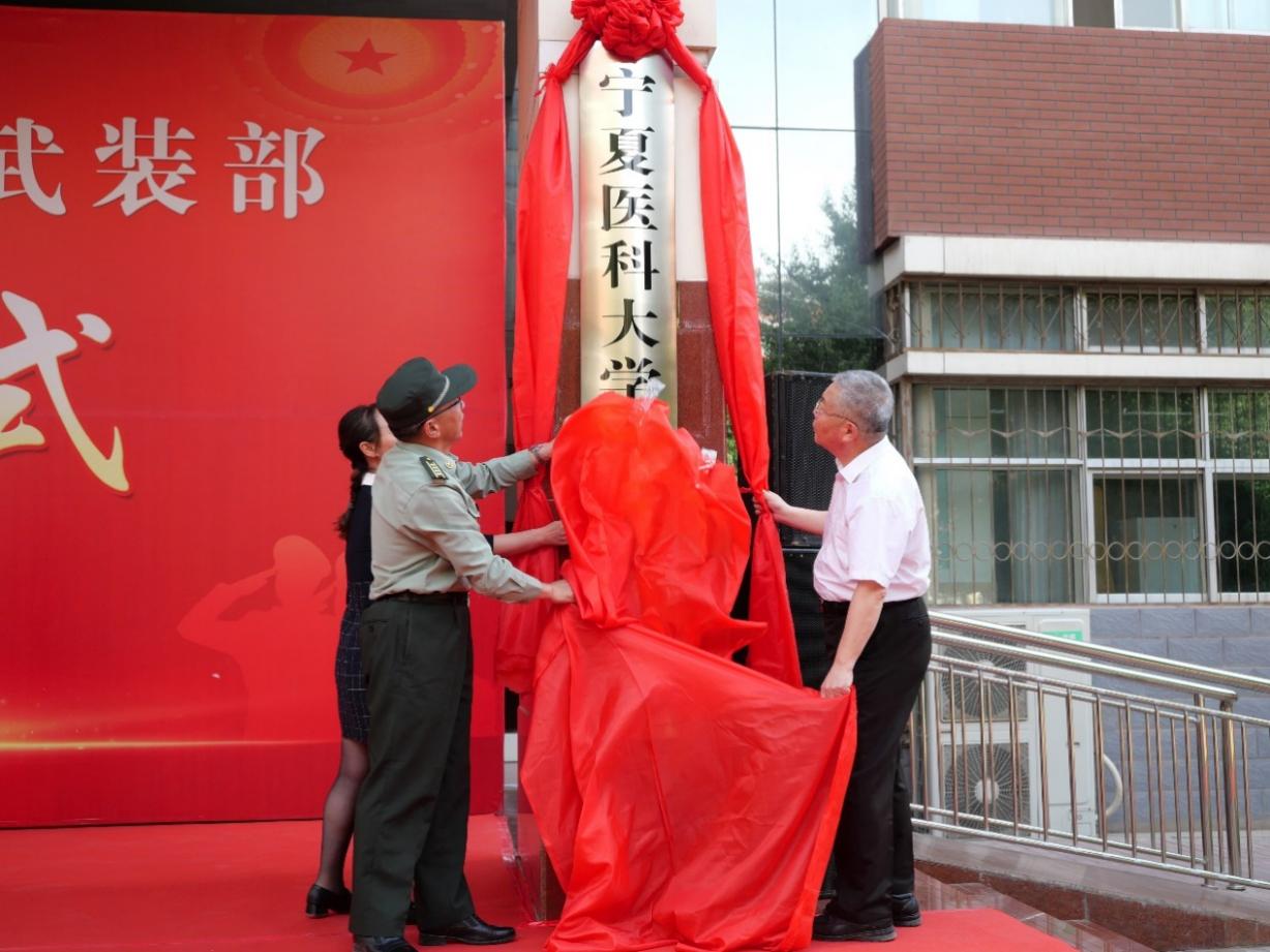 6月2日上午,伟德国际1946源于英国人民武装部成立暨揭牌仪式在双怡校区举行。银川市委常委、银川警备区大校司令员张伟,银川警备区动员处上校处长魏鑫,兴庆区委常委、人民武装部上校政委叶力宁,兴庆区人民武装部上校部长邹四成,学校党委副书记朱建华出席揭牌仪式。学校相关单位负责人、师生代表参加活动。学生处副处长李亚红主持仪式。