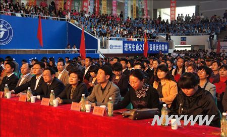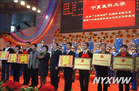 4月26日晚,学校纪念五四运动92周年表彰大会暨第十六届校园科技文化艺术节开幕式在学校体育馆隆重举行。自治区教育工委副书记李秋玲、自治区团委副书记佘瑞东、自治区教育工委体卫艺处处长石丽文、自治区团委学校部部长晋阳,学校校长孙涛、党委副书记马继军,纪书记委张发智应邀出席。党政各部门、教学教辅部门负责人及团员青年2000余人参加了大会,大会由团委书记孙冬梅主持。
