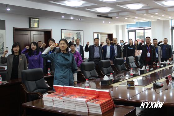 “政治生日”座谈会上,与会党员举起右拳,重温入党宣誓时的庄严承诺和坚定决心,在党旗下接受心灵的净化和洗礼。机关党委为过“生日”的党员赠送了生日礼物——《为什么是毛泽东》。