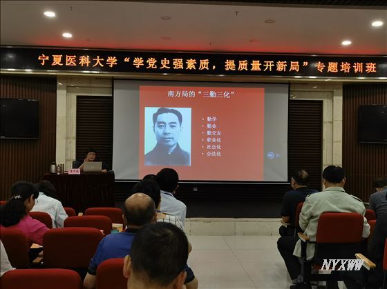 牛阳副书记代表学校党委在开班式指出,此次专题培训,学校党委高度重视,办公室、组织部和人事处通力合作,前期准备充分,培训内容丰富。他强调,全体学员要以习近平新时代中国特色社会主义思想为指导,以全面提升干部能力素质为重点,深化党史学习教育,传承红色基因、淬炼党性修养、凝聚发展合力,进一步统一思想、坚定信心,奋力开创新时代新宁医高质量发展的新局面。