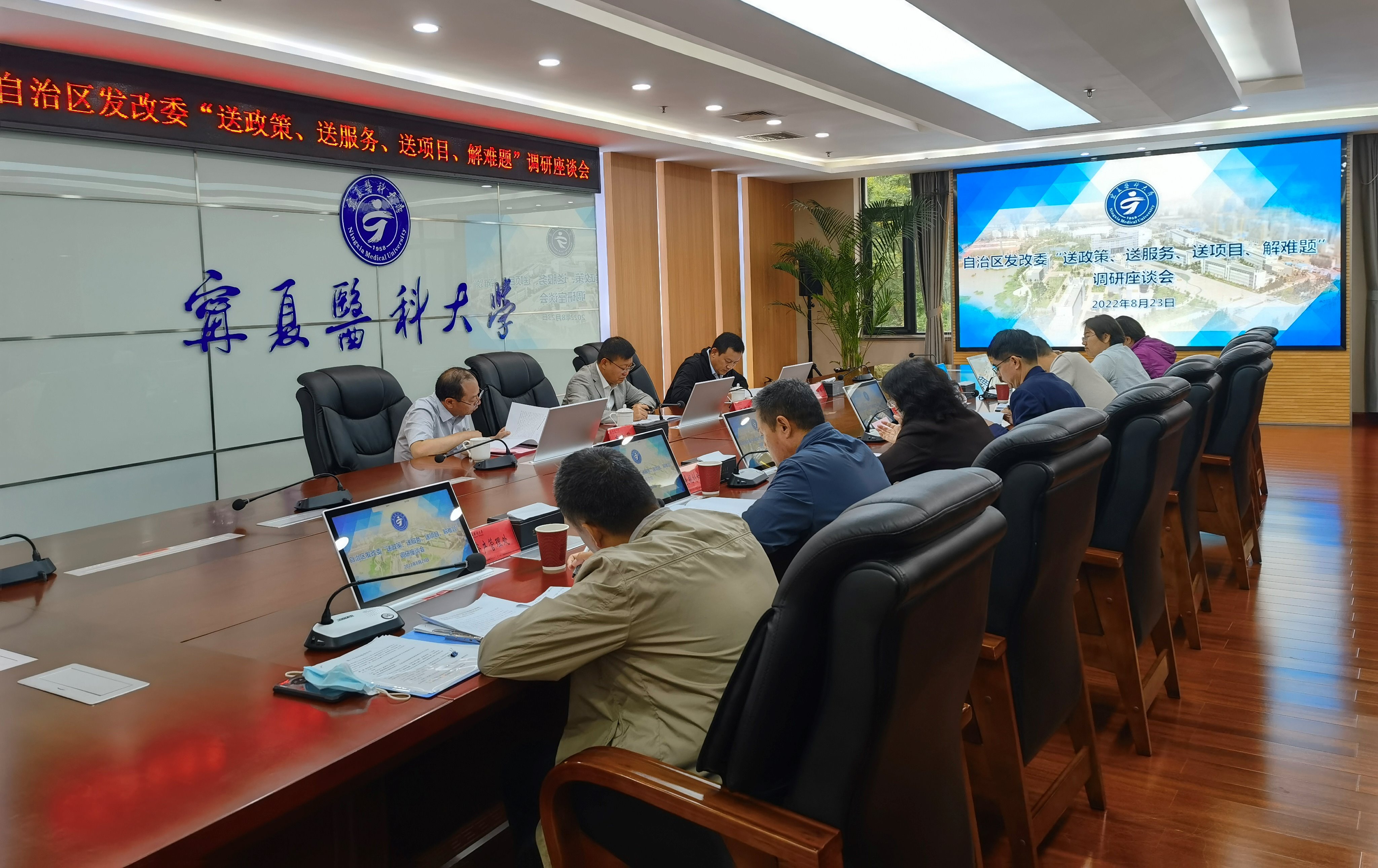 8月23日上午,自治区发改委副主任杨瑞军一行到学校调研并召开“送政策、送服务、送项目、解难题”座谈会。学校校长姜怡邓、副校长郝银菊及相关单位负责人参加了座谈会。会议由郝银菊主持。