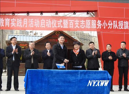 启动仪式上宣读了学校2018年“学雷锋”教育实践月活动方案。与会领导为20位四星级、五星级优秀志愿者颁奖并为30支志愿服务小分队代表授旗。学校青年志愿者代表马世杰同学倡议全体宁医学子向雷锋同志学习。活动中,学校团委书记、青年志愿者协会秘书长孙冬梅还与兴庆区团委书记杨涛签订了“美丽兴庆”校地共建协议。