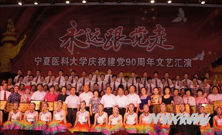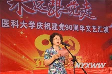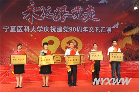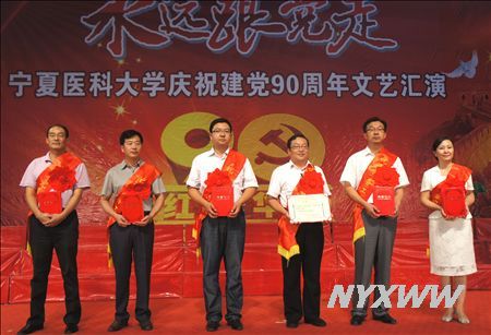 会上,孙涛校长代表学校党委向受到表彰的先进集体和个人表示热烈的祝贺!向在教学、科研、管理等各个岗位上辛勤工作的全体共产党员致以崇高的敬意和节日的问候!向为学校事业发展而忘我工作的全校师生员工表示衷心的感谢!他指出,中国共产党这90年历史,是为中华民族的独立、解放、繁荣,为中国人民的自由、民主、幸福而不懈奋斗的90年;是马克思主义基本原理与中国具体实际相结合、不断推进马克思主义中国化的90年;是我们伟大的祖国告别屈辱落后的历史、迎着民族复兴的曙光顽强奋进的90年;是中国人民掌握自己的命运、意气风发地走向现代化梦想的90年,是我们党不断经受各种风浪考验、不断开创各项事业新局面的90年。他强调,庆祝党的生日,坚定理想信念,最好的形式和行动,就是常怀忧党之心、恪尽兴党之责,努力办好让党放心、让人民满意的医学教育事业,坚持不懈地为党旗增辉、为时代添彩。他要求,要以“塞上堡垒”党建工程为抓手,进一步推动学校党建工作的深化与发展;要以今天受表彰的先进基层党组织、功能党小组、优秀党员和优秀党务工作者为榜样,切实发挥基层党组织战斗堡垒作用和党员先锋模范作用;要全力以赴做好近期期末考试和暑期的各项工作,尤其是建博中期检查工作,要切实做到任务明晰、责任明确,各迎检项目准备充分,各个环节衔接紧密,确保通过建博工作中期检查,以优异的成绩向党的90华诞献礼。