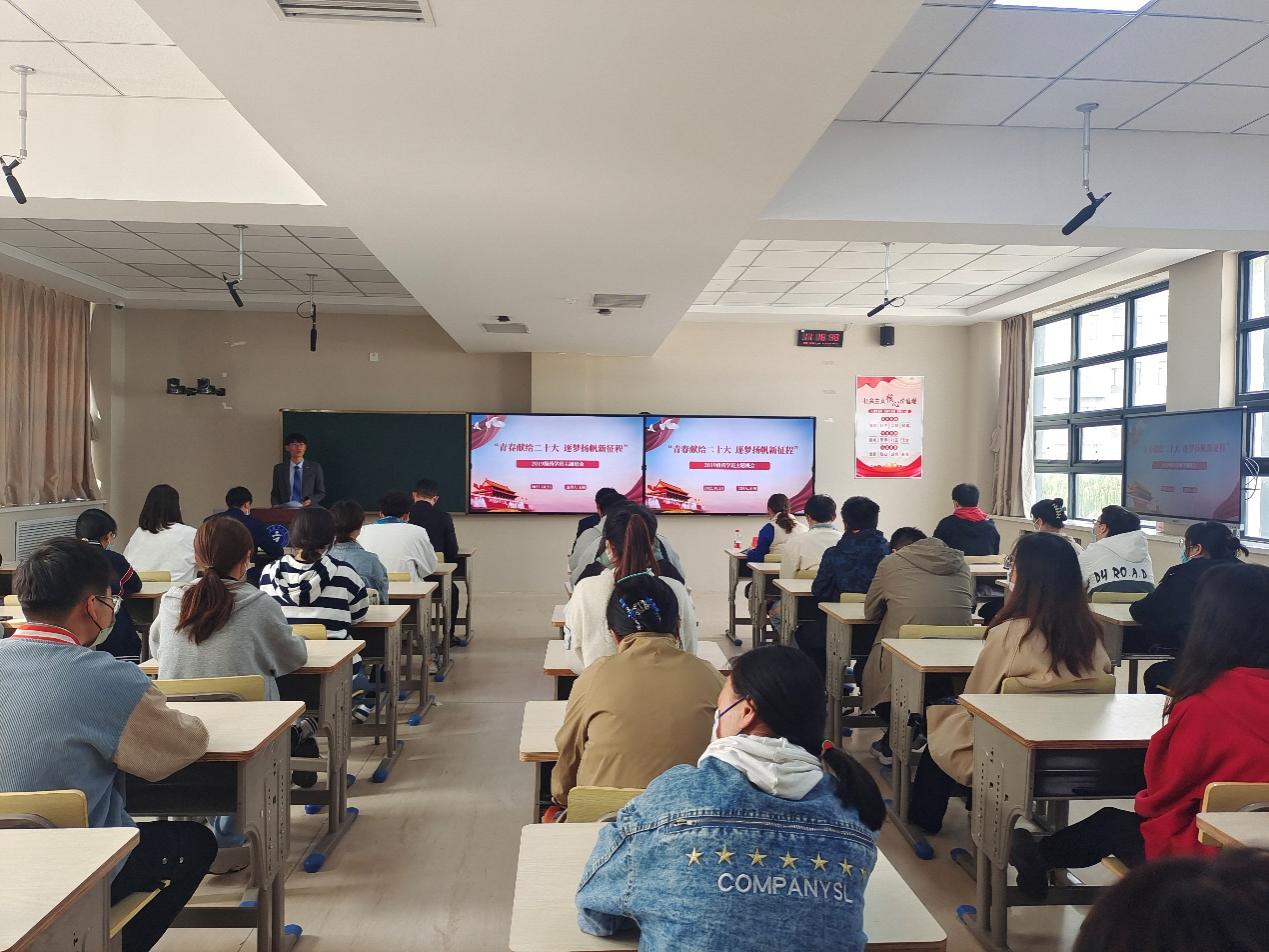 课前,姜怡邓还应邀参加了“青春献给二十大 逐梦扬帆新征程”主题班会,与同学们共同观看了《奋斗,放飞青春的梦想》的视频,6位同学以“中国精神”为主题进行了诗朗诵,3位同学结合学习党的二十大精神分享了心得体会。