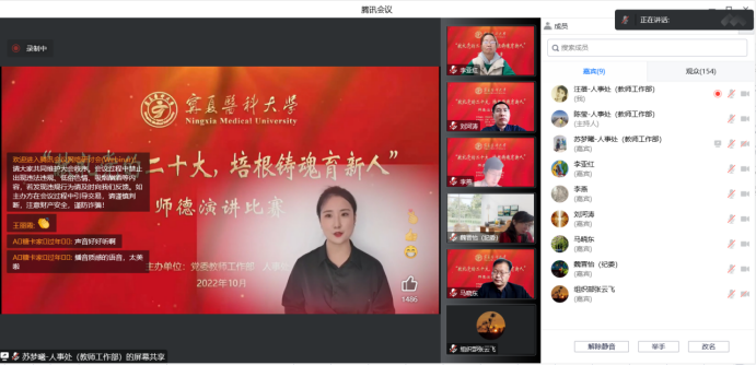来自各教学单位的11名选手紧扣主题,秉承为党育人、为国育才的初心使命,结合自己从教的亲身经历和感受,以自己或身边的先进教师的典型事迹为题材,讴歌长期以来为党的教育事业作出突出贡献的优秀人民教师代表,生动讲述宁医教师甘为人梯、乐于奉献的感人故事。经过激烈角逐,临床医学院刘尧邦获得一等奖,外国语教学部马丽梅、国际教育学院曹佳欣获得二等奖,药学院张文晋、马克思主义学院郭佳怡、护理(高职)学院白亚茹获得三等奖,比赛还评出优秀奖5名。