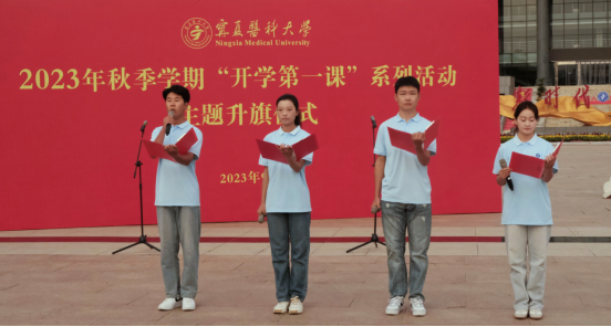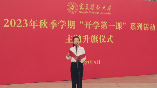 伴随着庄严的国歌声,鲜艳的五星红旗冉冉升起,迎风高扬,师生共聚国旗下,同上一堂课,共迎新学期。学生代表声情并茂,带来诗朗诵《五星红旗我们向您敬礼》,马克思主义学院青年教师郭佳怡讲授了题为“以奋斗之姿书写强国有我的青春答卷”国旗下的思政微课,田丰年围绕“立大志明大德脚踏实地增长才干做新时代有为好青年”讲授开学第一课。
