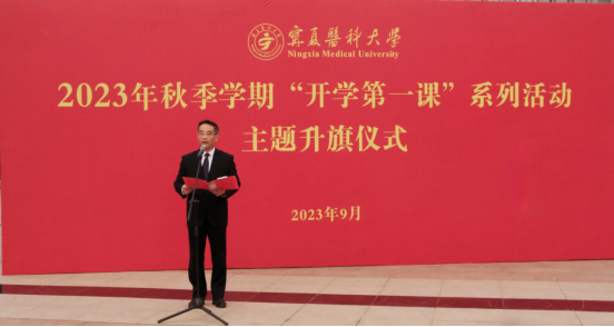 9月11日上午,学校举行2023年秋季学期“开学第一课”系列活动暨“争做有理想、敢当担、能吃苦、肯奋斗的新时代好青年”主题升国旗仪式。学校党委书记田丰年,党委副书记、校长姜怡邓,副校级领导牛阳、刘志宏、谢波、杜勇出席活动,党政群部门负责人,教学科研教辅单位党政负责人,教师代表,学工人员和全体在校学生参加活动。活动由学校党委常委、副校长史金龙主持。