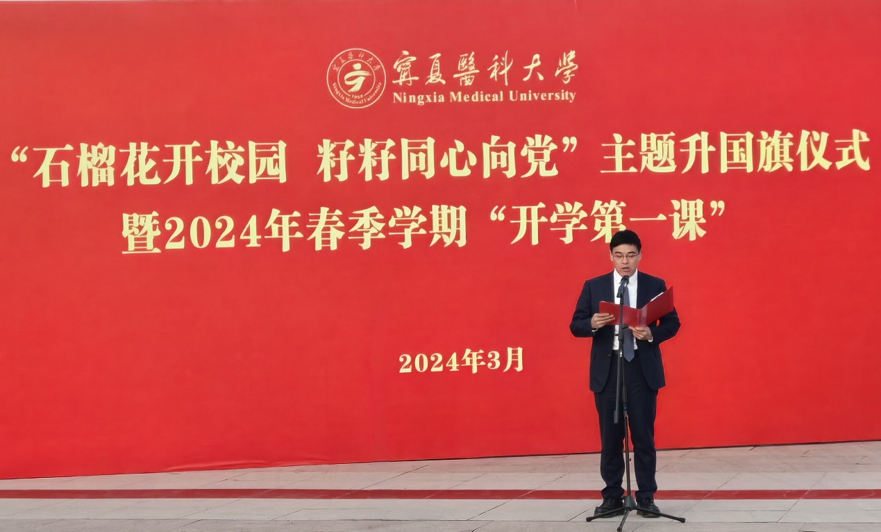姜怡邓以《铸牢中华民族共同体意识 争做担当民族复兴的时代新人》为题讲授“开学第一课”。他回顾了学校2023年取得的成绩,并表示过去的成绩鼓舞人心,未来的征途更催人奋进,全体师生要把铸牢中华民族共同体意识作为学校各项工作的主线,凝心聚力、苦干实干,推动学校高质量发展。他希望同学们要逐梦想、明志向、心怀家国,把个人的发展汇入时代洪流,让青春梦想与家国情怀共振;要正言行、塑品质、修身立德,把“所有”转化为“所用”,成长为精神优秀、灵魂丰富、学识渊博、修养深厚的人;要重团结、爱家园、荣我宁医,在广泛交往、全面交流、深度交融中,像石榴籽一样紧紧抱在一起,在与民族复兴伟业的同频共振中留下属于自己的青春印记,努力成为宁医的骄傲、国家民族的骄傲!
