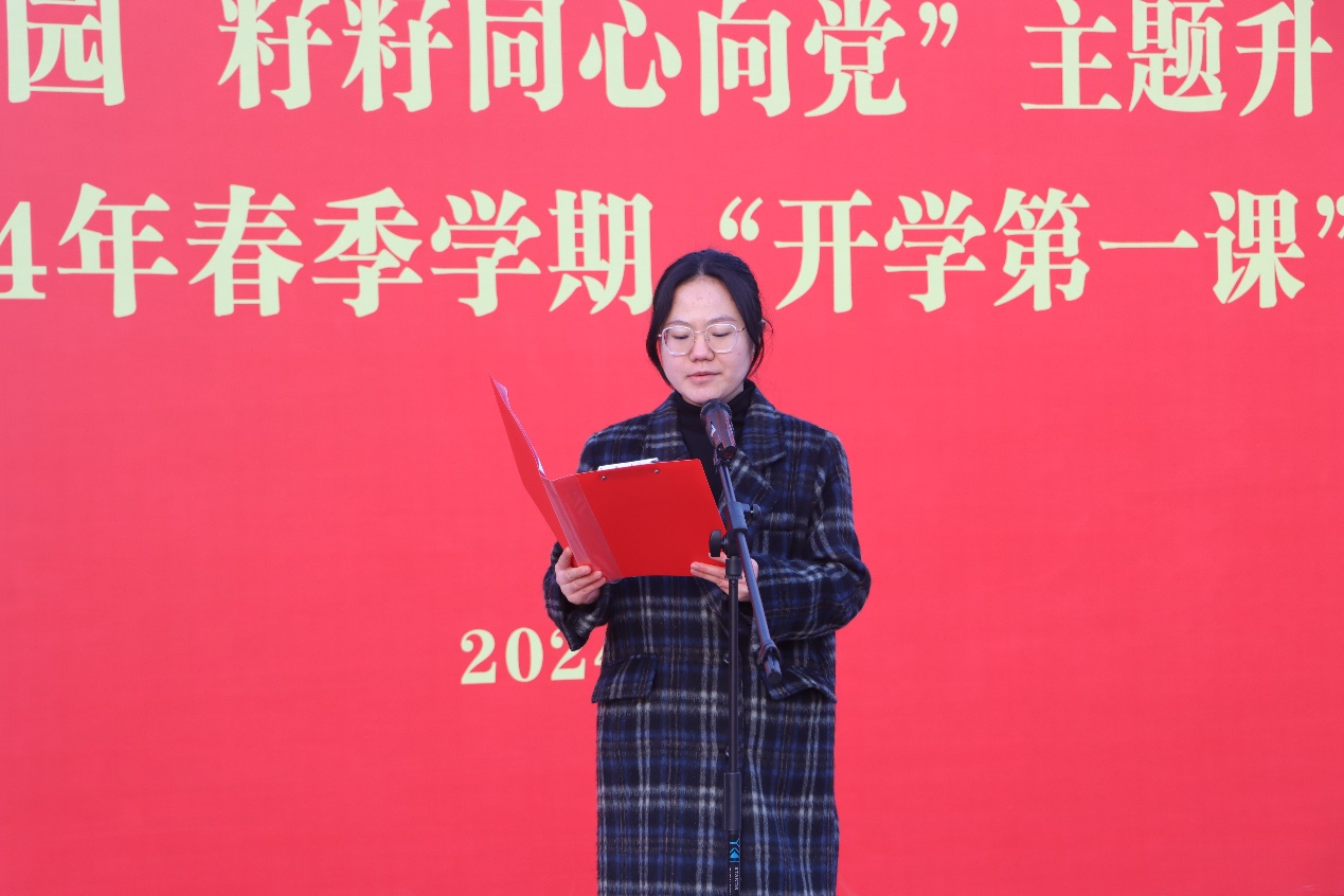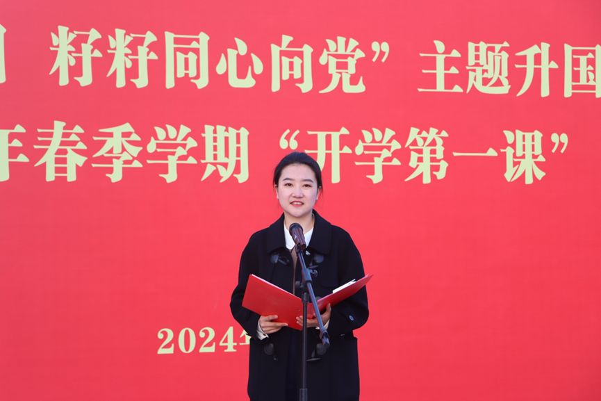3月11日清晨,学校在雁湖校区和双怡校区举行“石榴花开校园 籽籽同心向党”主题升国旗仪式暨2024年春季学期“开学第一课”。学校党委副书记、校长姜怡邓出席仪式并讲授“开学第一课”。办公室、宣传部、统战部、学生处(党委学工部)、团委、研究生院(党委研工部)等部门负责人,马克思主义学院党政负责人,各学院党委(党总支)书记、分管学生工作副书记、学工人员及全体在校学生参加。升旗仪式由党委副书记牛阳主持。
