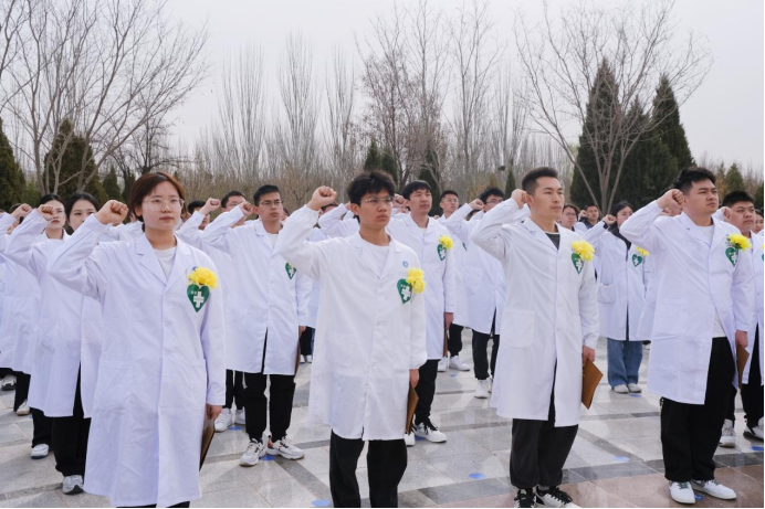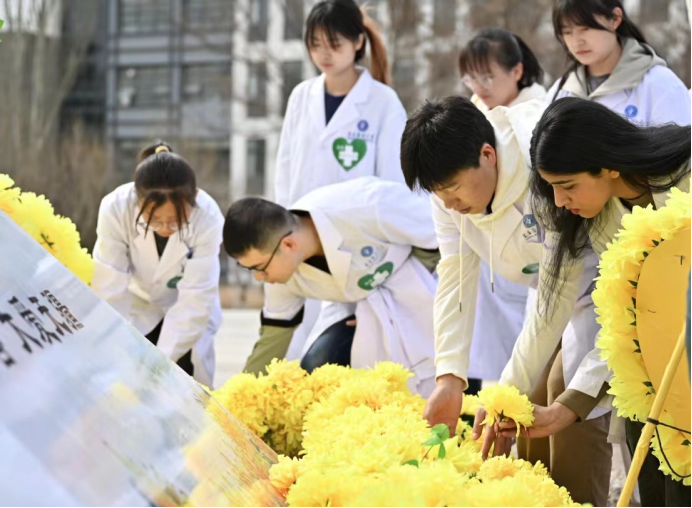 这是学校自2011年以来,连续13年开展清明致敬遗体捐献者活动。通过富有仪式感的缅怀纪念活动,引导学生在感受捐献者的大爱大义中,感悟对生命的敬畏和医生救死扶伤的责任,弘扬大爱无私、志愿奉献的精神。