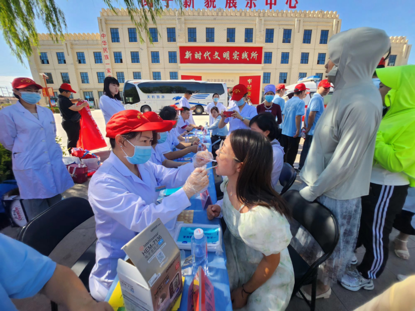 7月17日,第三临床医学院50名师生前往银川市永宁县闽宁镇,开展“红心向党,青医相伴”暑期“三下乡”社会实践活动。在闽宁新貌展示中心,大家深刻感受到了东西部扶贫协作的伟大成果和浓浓的山海情。秉承“专业面向群众,爱心奉献社会”的宗旨,团队师生共同为村民开展了义诊活动。中医科、眼科、骨科等青年医师,带领同学们为当地百姓问诊、查体,测血压、血糖,提供专业的诊疗建议和用药指导,发放健康宣教手册等,并针对常见病、多发病进行科普,讲解预防方法,进一步提高群众的自我保健意识。义诊现场,青年医师还现场面向同学们进行心肺复苏培训,并带领同学们走村入户,到身患重病、行动不便的老人家中为他们入户义诊,送去米面油等生活必需品。同时,对老人进行深度的健康状况调研,让村民在家门口就可以享受到便捷的医疗服务和健康指导,以实际行动增强当地百姓的幸福感、获得感。此次社会实践活动,不仅是一次教学与实践、思政与实践、学术与实践的结合,更是一次奔跑在追逐理想路上的驰骋。同学们深入了解基层医疗、群众需求、产业振兴等情况,并在实践中锤炼意志、增长才干、服务社会,充分展现了当代青年的青春作为、责任担当与时代风采。