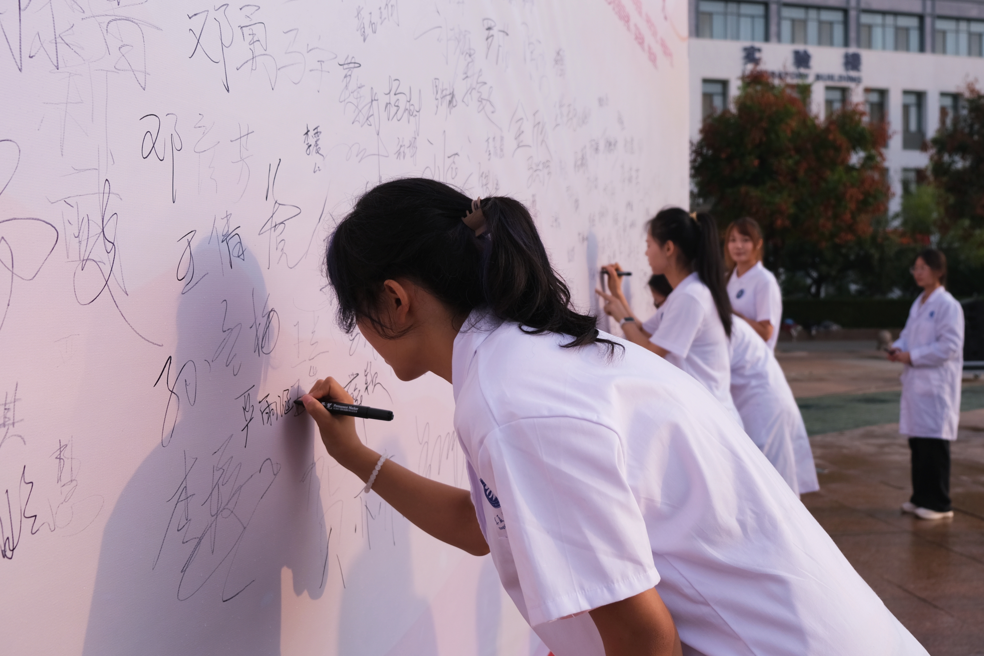 大学生艺术团的同学们朗诵了《我在一颗石榴里看见了我的祖国》,抒发了对祖国的热爱、对中华民族的热爱。师生共同在“石榴花开校园 籽籽同心向党”承诺签名墙上签下自己的名字,许下庄严承诺,争做铸牢中华民族共同体意识的践行者和传播者。