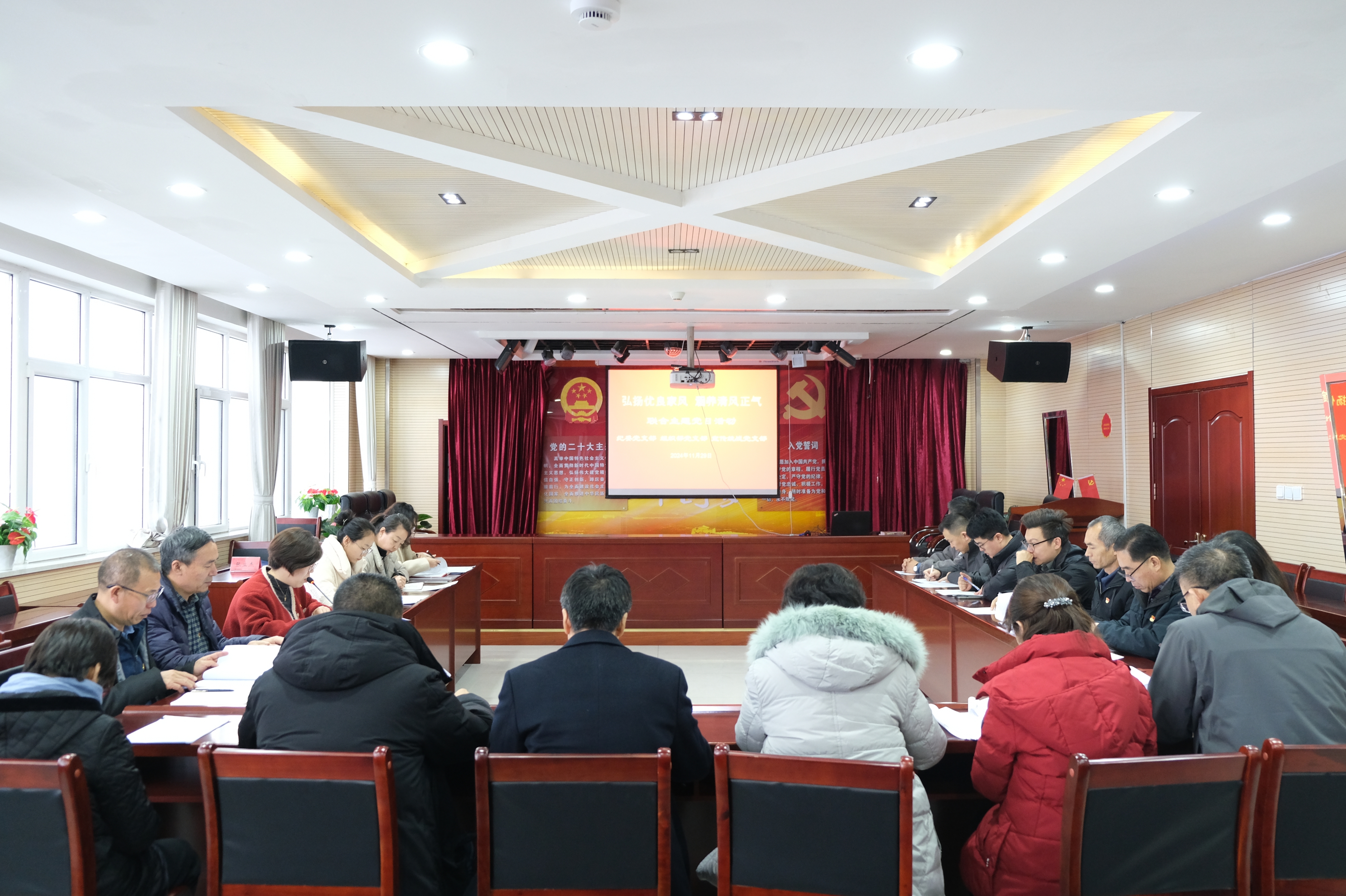 11月29日下午,学校机关党委纪委党支部、组织部党支部、宣传统战党支部在宝湖社区开展“弘扬优良家风、涵养清风正气”联合主题党日。学校党委副书记邓彦芳、纪委书记张立杰以普通党员身份参加活动。
