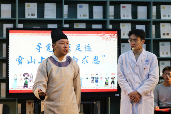 活动中,全体师生同上一堂生动的“思政课”,团支部书记潘妍晨同学以《讲述我们的故事》为题汇报了团支部的建设情况,黎耘希、向妍冰、马誉灵、常益铭和党鹏等5位学生代表紧扣“青春的声音”分享了他们各自学习成长的故事,李正柏 、石政、吴玫莹、潘妍晨和李正海等5位同学以纳西族老中医和树龙的感人事迹为主线,表演了原创微话剧《雪山上的“白求恩”》。