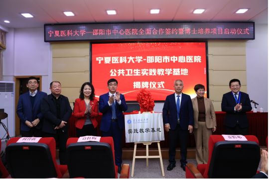 12月5日,学校在邵阳市中心医院举行全面合作签约暨博士培养项目启动仪式。学校党委副书记、校长姜怡邓,党委常委、副校长刘志宏,邵阳市人民政府副秘书长许红梅,邵阳市卫生健康委员会主任何育新,邵阳市中心医院党委书记朱鹏程、院长郑核,学校办公室、研究生院、公共卫生学院负责人和邵阳市中心医院医务工作者代表参加。