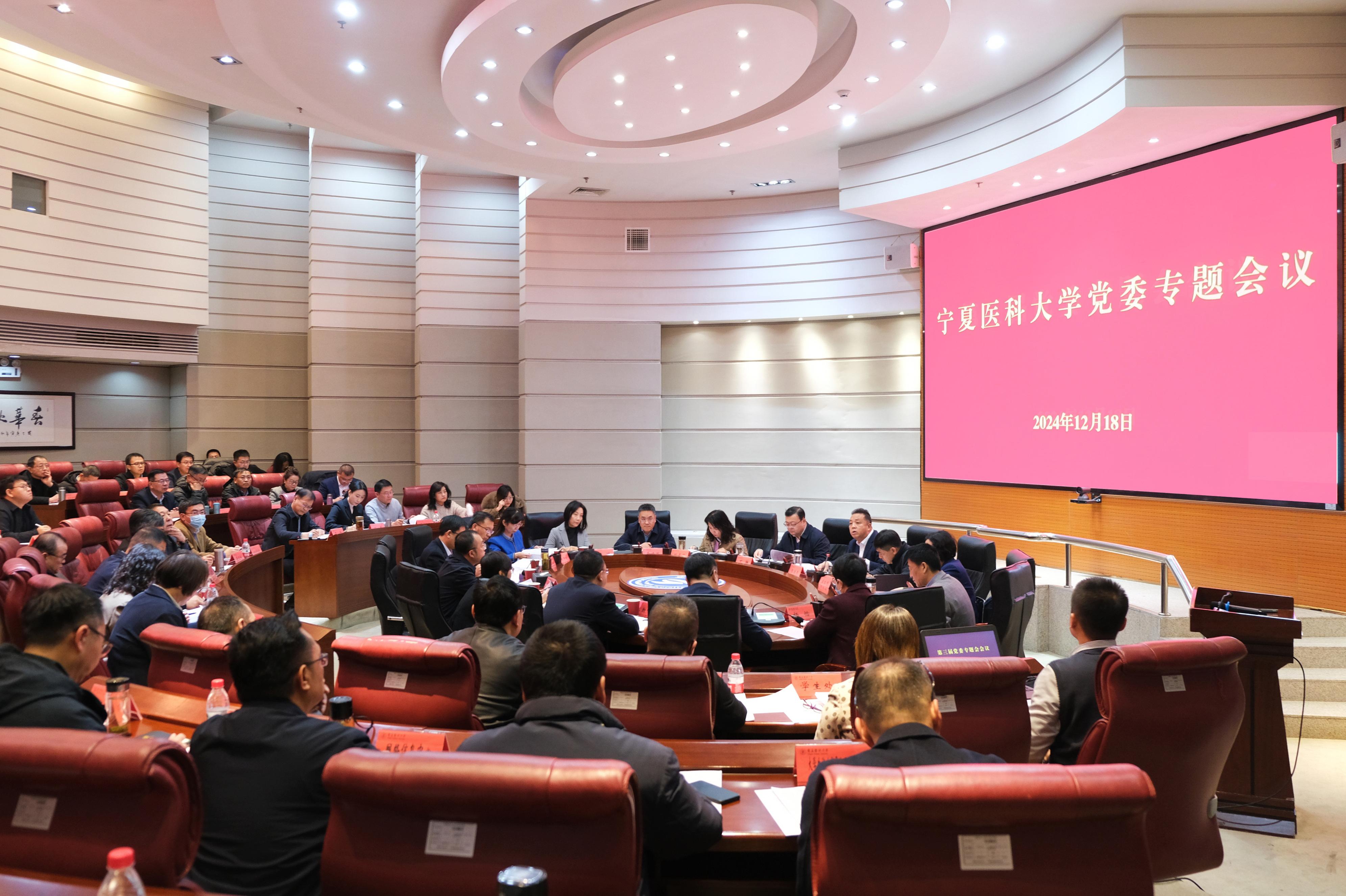 会议强调,2025年是贯彻落实学校第三次党代会精神的关键之年,也是贯彻落实学校“十四五”发展规划的收官之年、谋划“十五五”发展规划的开局之年。做好2025年工作,使命光荣、责任重大,要抢抓机遇,强自信抓发展、迎挑战求突破、强担当勇作为。要突出政治引领,自觉扛牢学校改革发展之责,持续增强一体学习贯彻党的二十届三中全会精神、习近平总书记考察宁夏重要讲话精神的自觉性、主动性和责任感,全面贯彻党的教育方针,始终坚持立德树人根本任务,突出发挥好学校在高等医学教育和“健康宁夏”的“双龙头”作用,以坚定的政治立场、实际的工作行动、昂扬的精神状态、务实的工作作风在推动学校改革发展中下功夫、开新局、谱新篇。要强化顶层设计,高位谋划学校重点工作,自觉站位全局,准确把握学校建设西部一流应用研究型医科大学目标定位,有序推动基层党组织建设、人才队伍建设、学科建设、科研创新、“院院合一”、资源配置优化和校园建设规划调整等重点改革任务。要坚持严实作风,以上率下,把责任层层传导、压紧压实,把精耕细作贯穿于学校工作的全过程各方面,深入开展调查研究,及时了解新情况新问题,破除贯彻落实中的难点堵点痛点,真正把各项工作部署落实到具体行动中,体现到实际效果上,交出一份让全校师生员工满意的宁医新答卷。