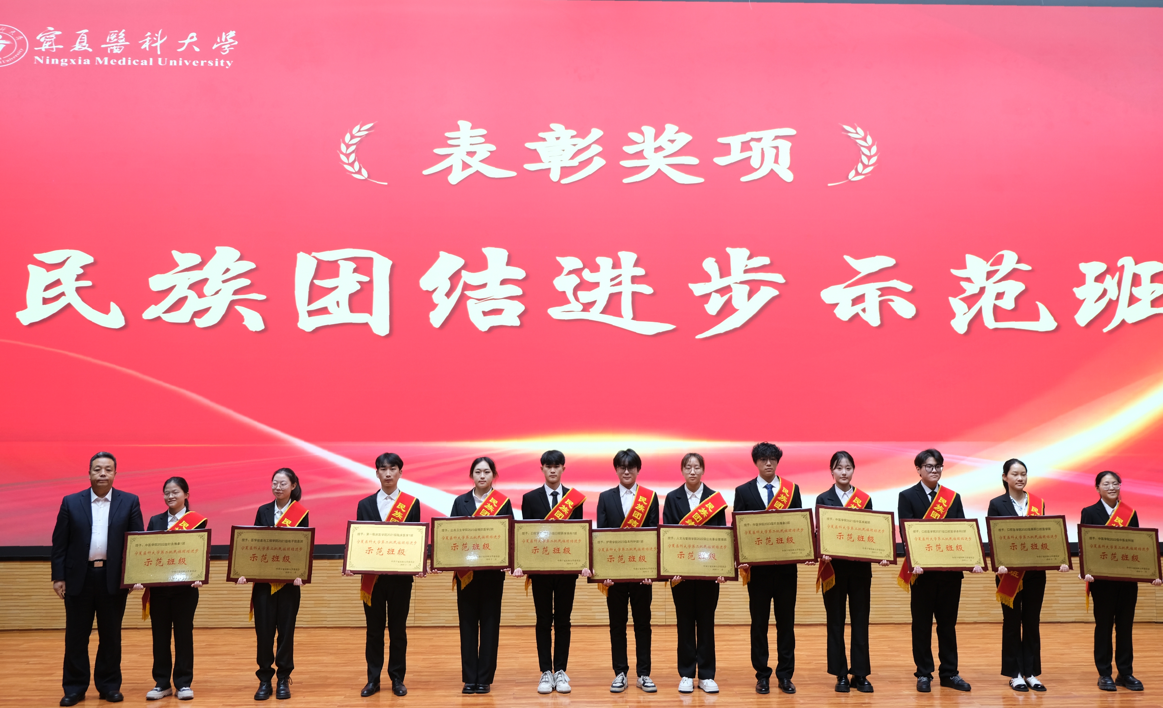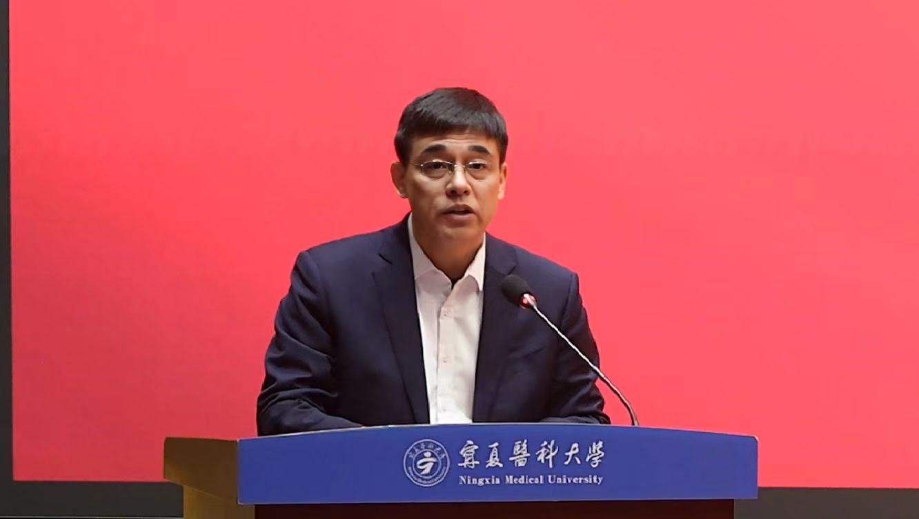 姜怡邓寄语全体受表彰学生,他讲到,2024年,全校上下一心,始终坚持以习近平新时代中国特色社会主义思想为指导,深入学习贯彻党的二十届三中全会和习近平总书记考察宁夏重要讲话精神,全面落实自治区党委十三届七次、八次、九次全会精神,并胜利召开了学校第三次党代会,一起按下了建设西部一流、国内知名、国际有影响、特色鲜明的应用研究型大学的“加速键”,为全力以赴推动学校高质量发展奋勇向前标明了航标。宁医学子通过勤奋学习、锐意进取,在创建民族团结进步示范班、学术论文发表、科创比赛、体育竞赛以及社会志愿服务等方面取得了优异成绩,全面展示了宁医学子的青春风采。
