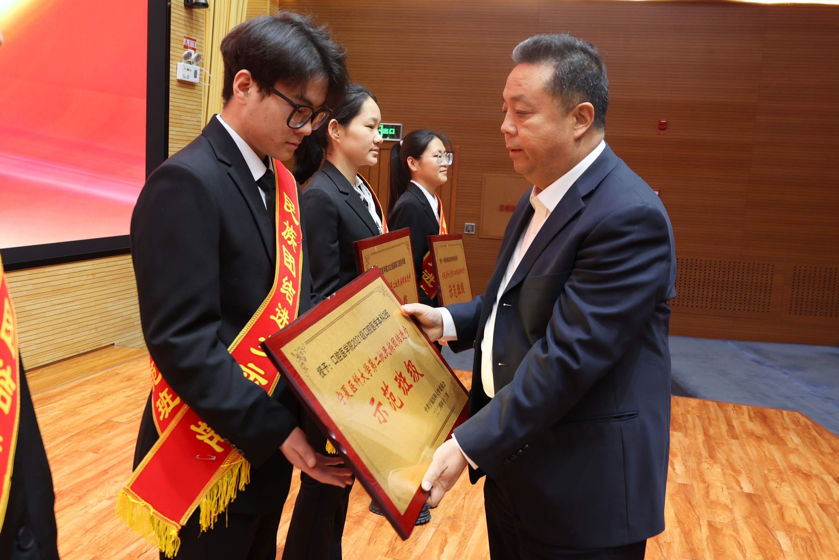 大会在庄严的国歌声中拉开帷幕,会议宣读了2023—2024学年获得各类奖学金、先进班集体、优秀个人的表彰决定和授予23个“民族团结进步示范班级”的通知。张治荣、姜怡邓和副校级领导分别为被授予“民族团结进步示范班”代表,先进班集体获奖代表,国家奖学金获奖代表、国家励志奖学金获奖代表,校长特别奖学金获奖代表,自治区来华留学生政府奖学金获奖代表,“三好学生标兵”、“三好学生”获奖代表和优秀学生干部获奖代表颁发奖牌、荣誉证书。