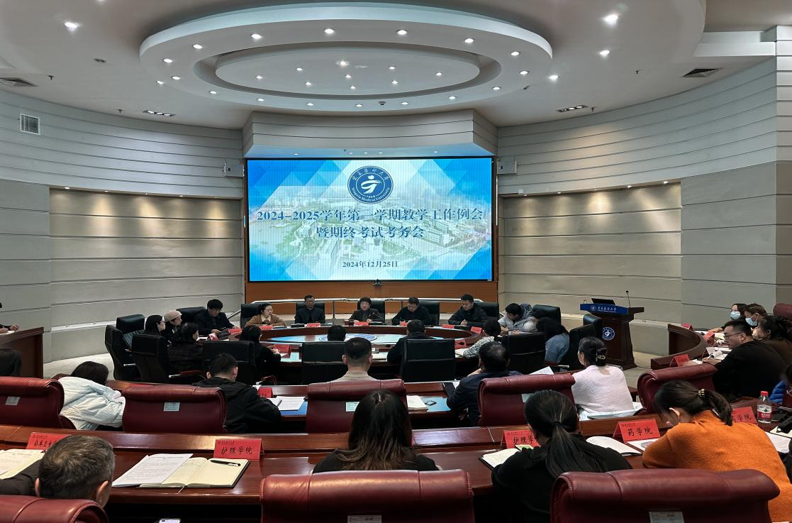 12月25日下午,学校在雁湖校区正德楼国际会议厅召开2024-2025学年第一学期教学工作例会暨期终考试考务会。学校副校长杨怡,各部门(单位)负责人,各学院分管教学副院长、分管学生工作副书记和教学办负责人参加会议。