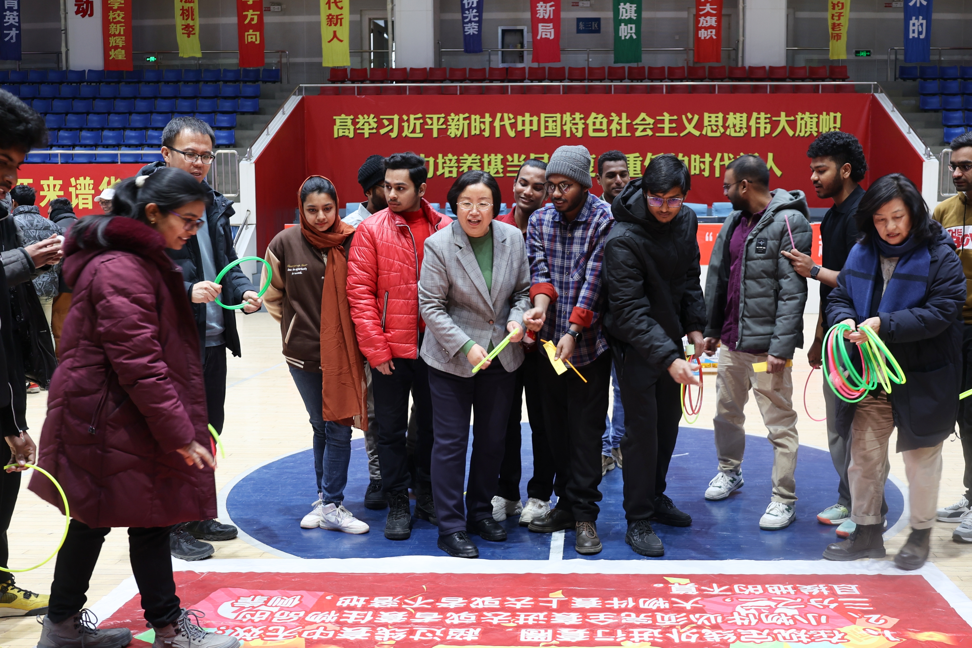 1月22日,学校在雁湖校区弘毅体育馆举办“相聚宁医 共筑美好”留学生新春慰问活动暨“乐享中国年”趣味活动。学校党委副书记邓彦芳,国际教育学院全体领导班子、教职工与在校留学生齐聚一堂,共贺新年。