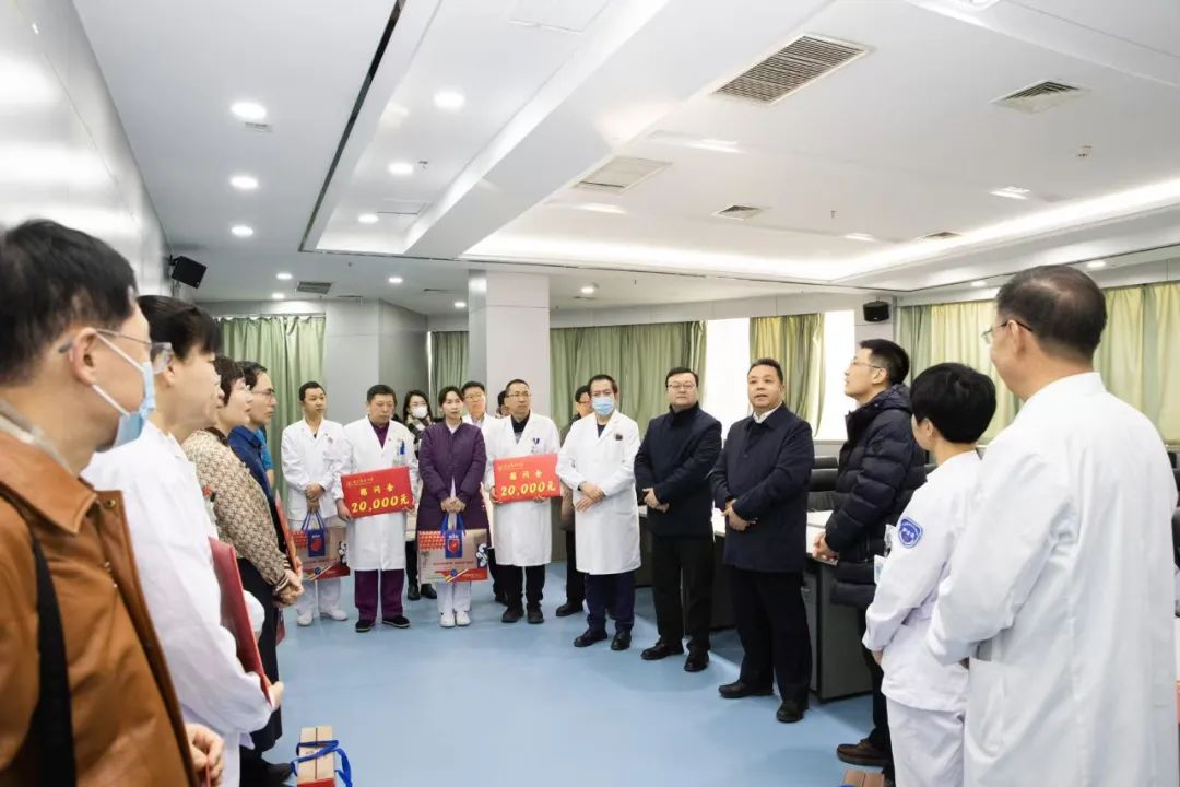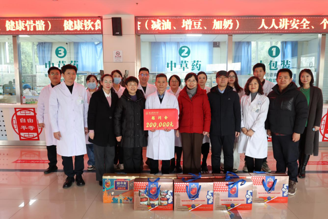在附属中医医院门诊处,校领导看望慰问了医院2024年度优秀科室代表和一线职工,感谢全院职工付出的努力,勉励大家在新的一年再接再厉,为健康宁夏建设和中医药事业发展贡献新的力量。医务工作者们向学校的关心支持表示感谢,表示将继续兢兢业业、恪尽职守,为医院各项工作高质量发展奠定坚实基础。